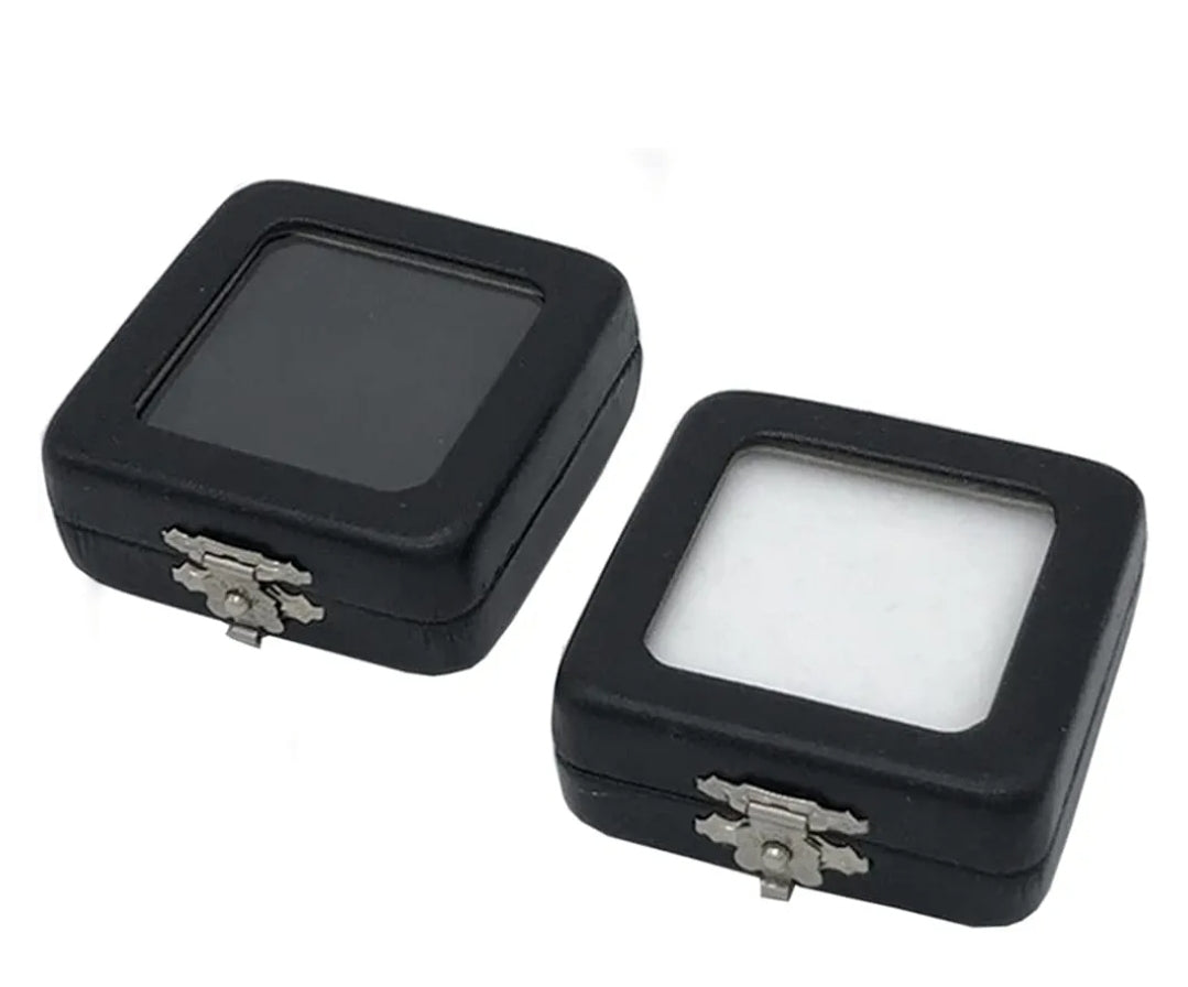 This piece comes inside a small leatherbound, glass top, clasp display case. The case can lay flat for a downward view, or stood up on its hinge side for a forward facing view. The interior of the case has a double-sided reversible black/white velvet cushion for the background color. *It is important to note: The photographs of this piece placed in the display case, does not accurately reflect the color. The piece inside the case is the same as if out of the case.